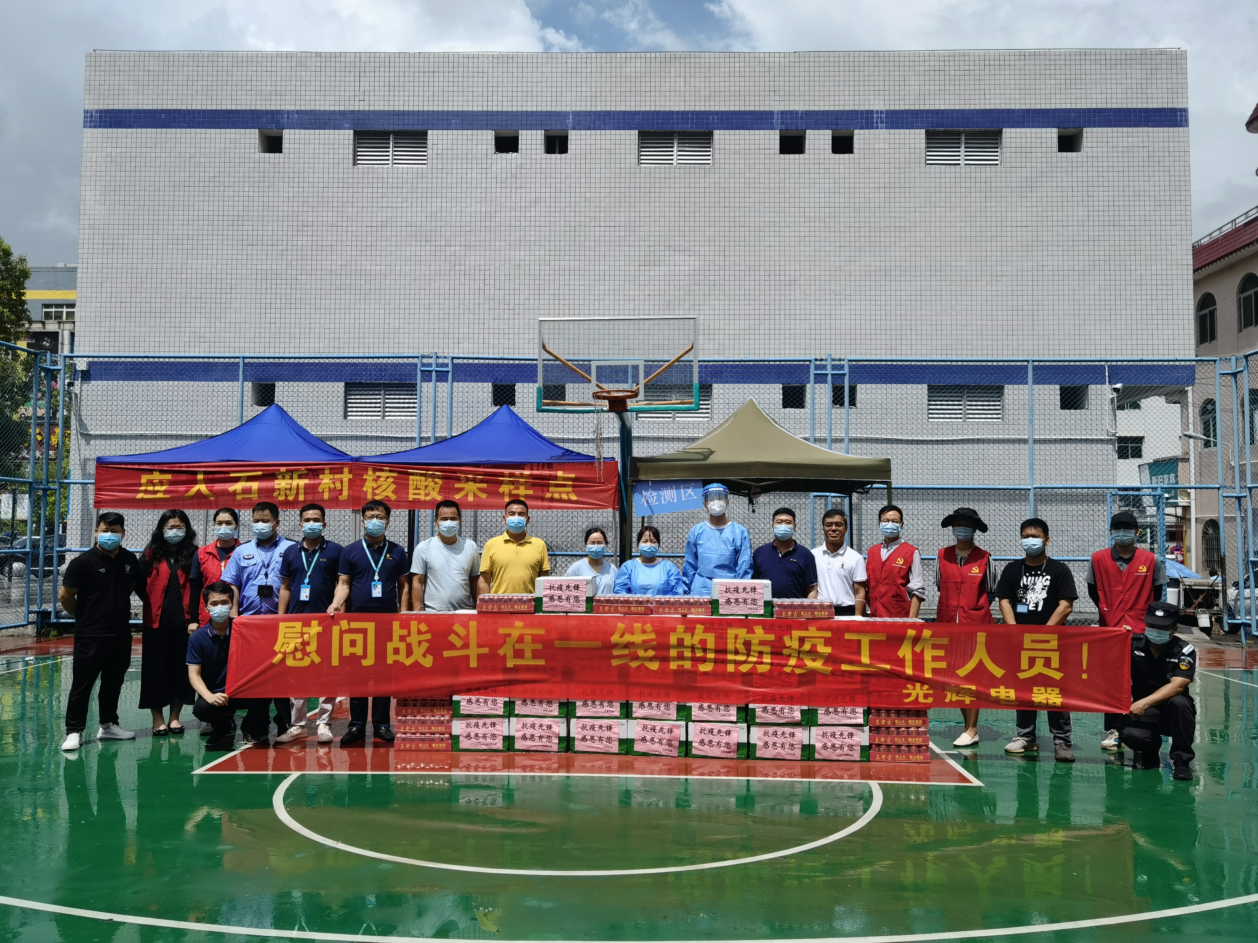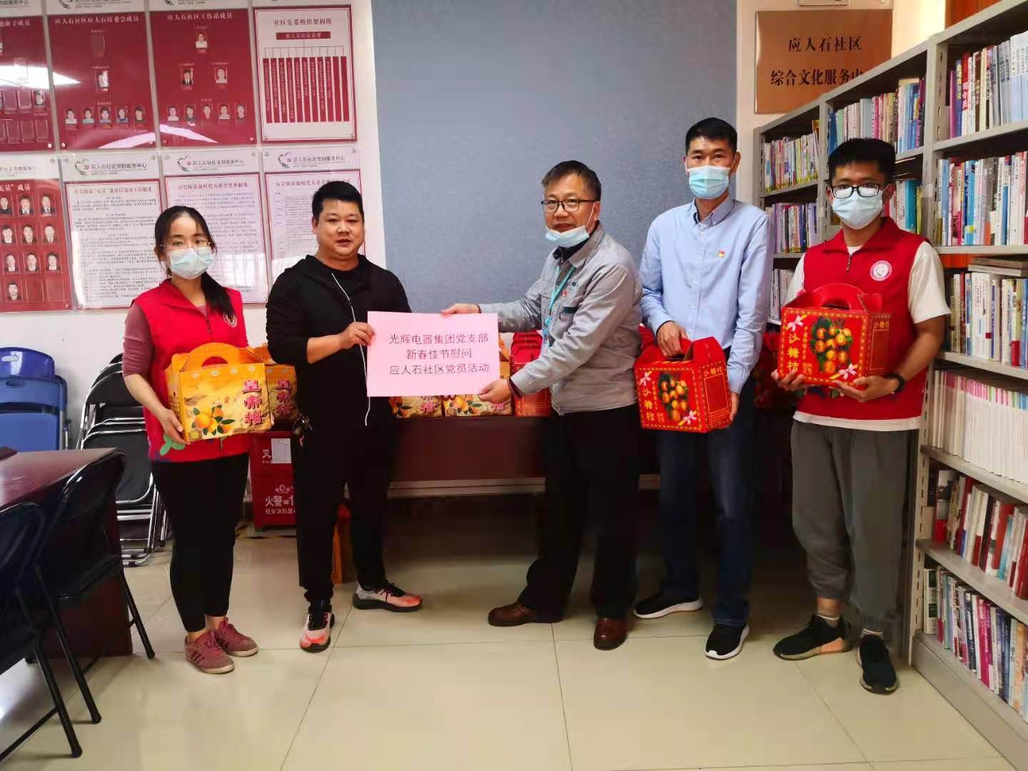 在2021年新春佳節之際,為表達對疫情防控一線的社區黨員,光輝電器集團黨支部在應人石社區進行慰問,向堅守在工作站的醫護人員、社區工作者和黨員以及志愿者等一線疫情防控人員送上水果等慰問品。