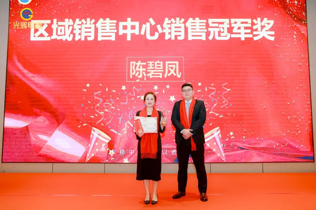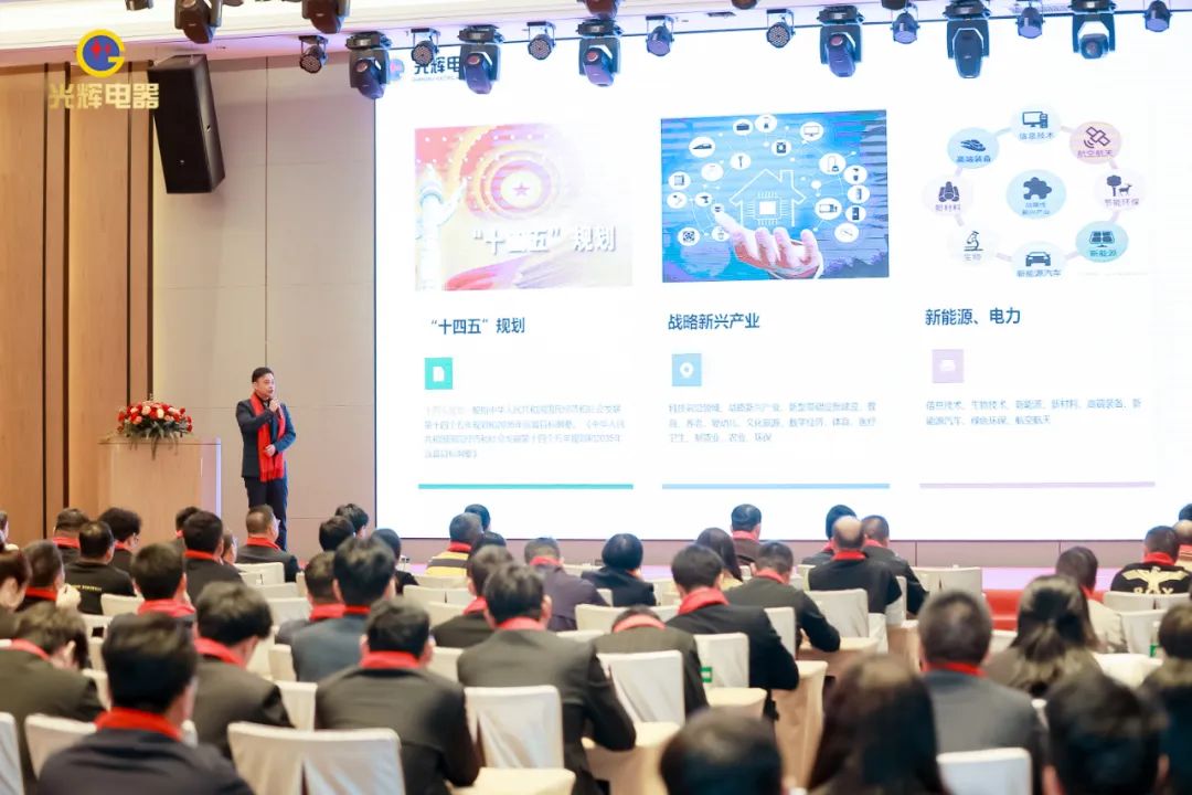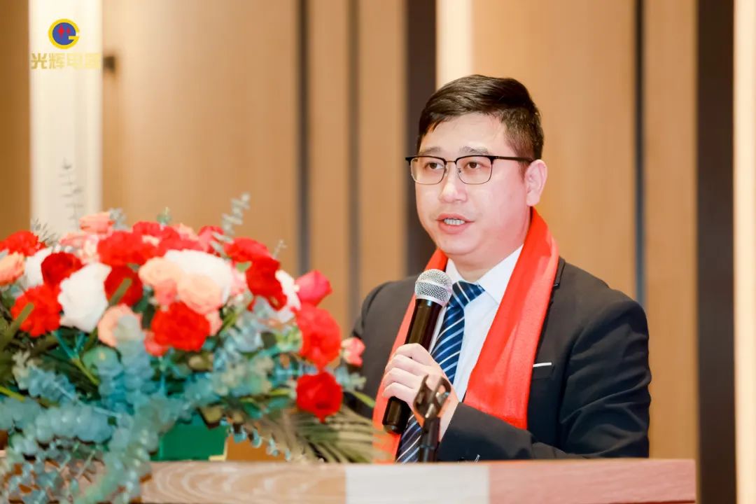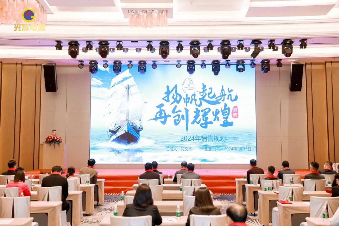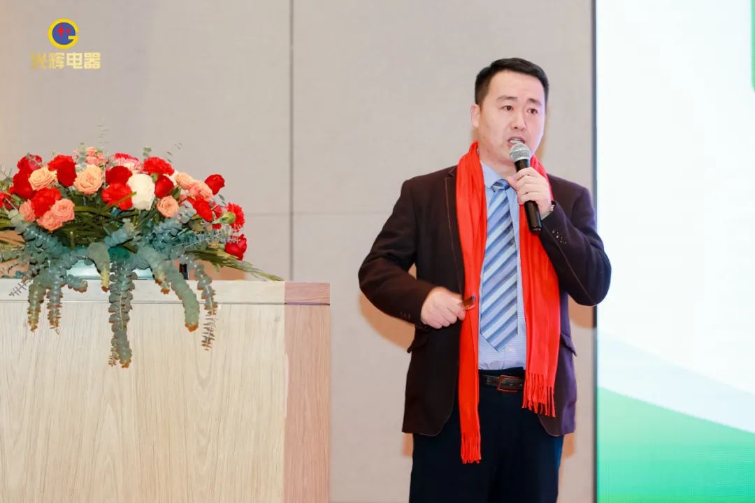 年會伊始,光輝公司董事長蔡宗光發表激情演講;行董事兼總經理孫偉作2024年規劃;常務副總賀未作2023年工作總結;他擲地有聲地向大家描繪了2024年全新藍圖;營銷中心總經理沈文杰作2024年營銷中心工作部署。