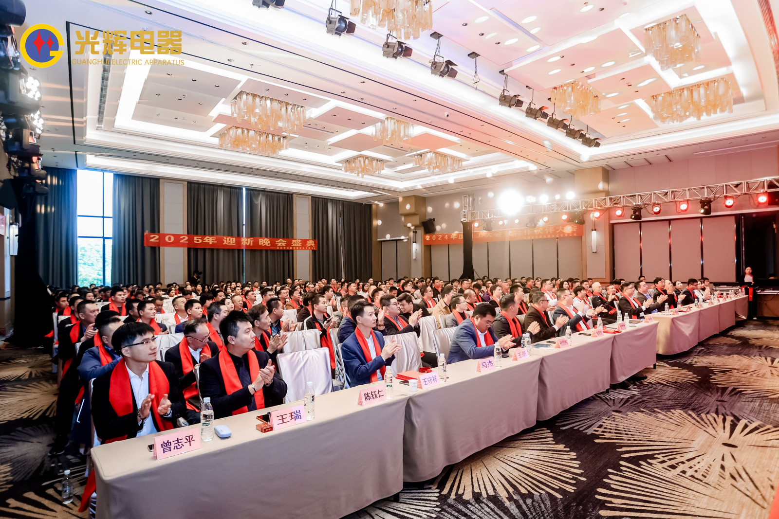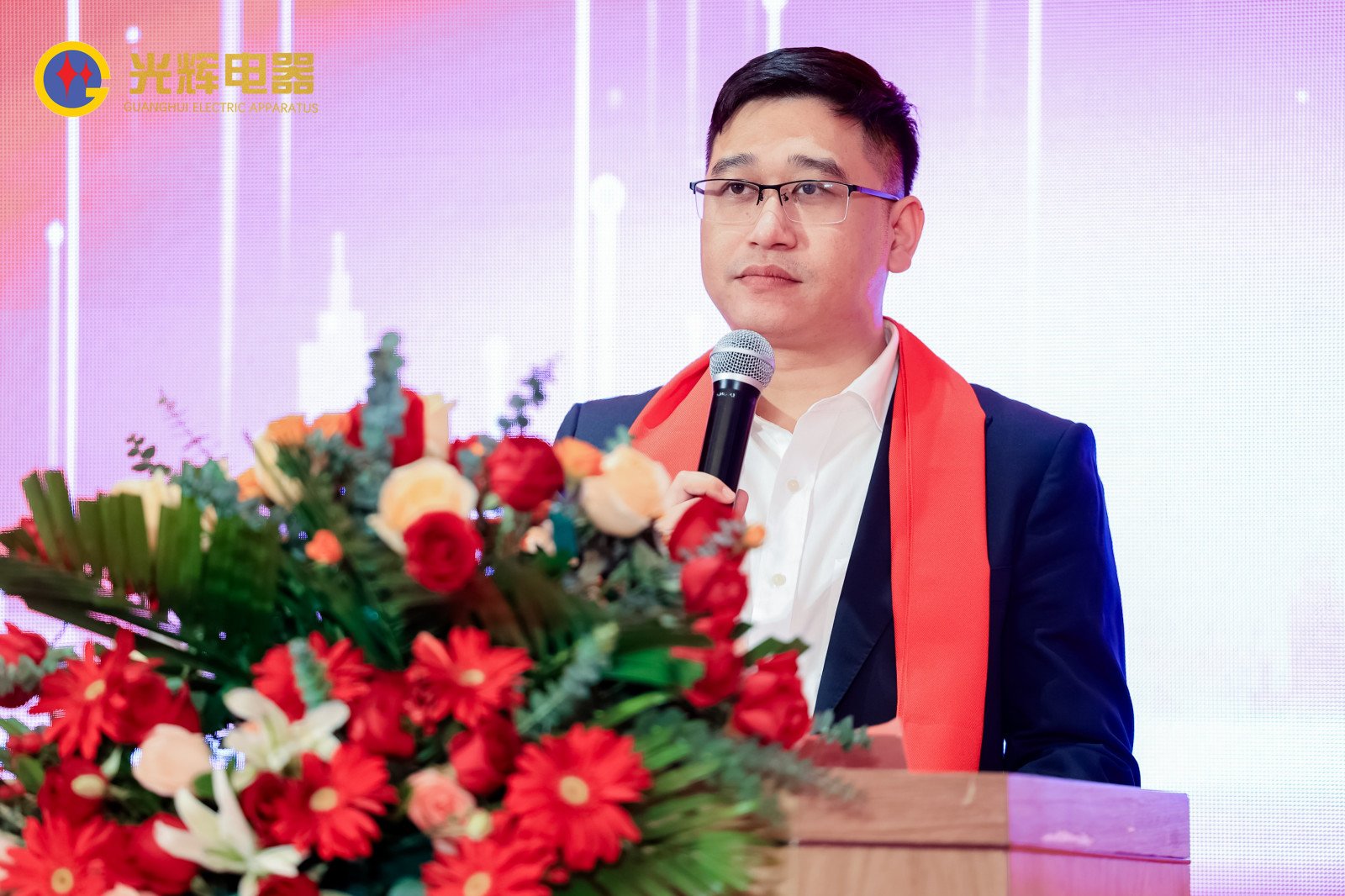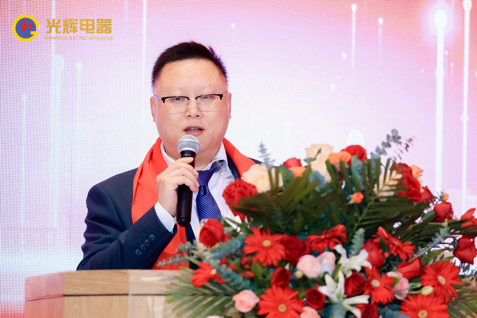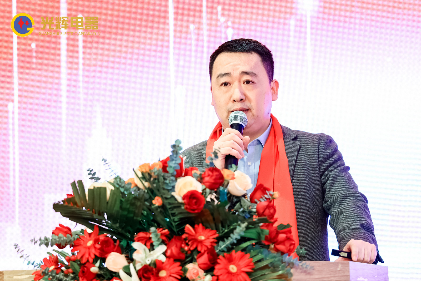 PART.03年會伊始,光輝電器董事長蔡宗光先生慷慨激昂的致辭,執行董事孫偉先生對2025年公司發展做出了戰略規劃;總經理賀未先生對2024的工作內容進行總結,對2025的工作進行全面部署;公司副總經理兼營銷總經理沈文杰先生對營銷中心工作進行總結以及部署。各位領導紛紛講話,號召光輝人人凝心聚力,共贏未來!