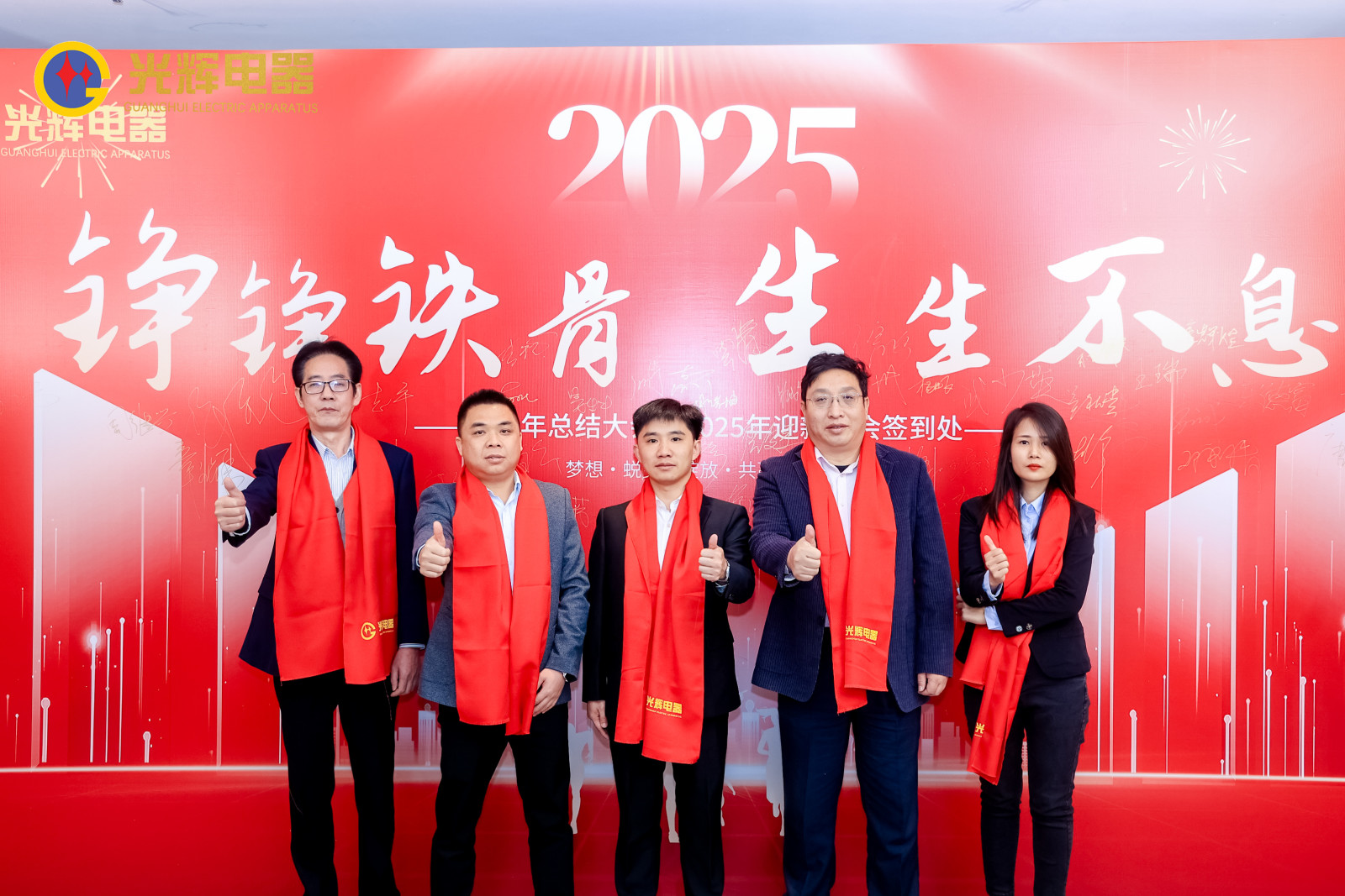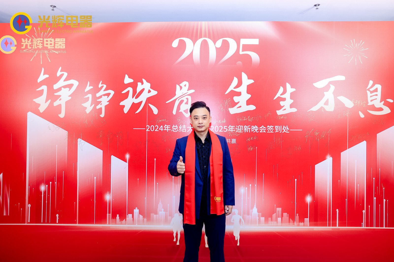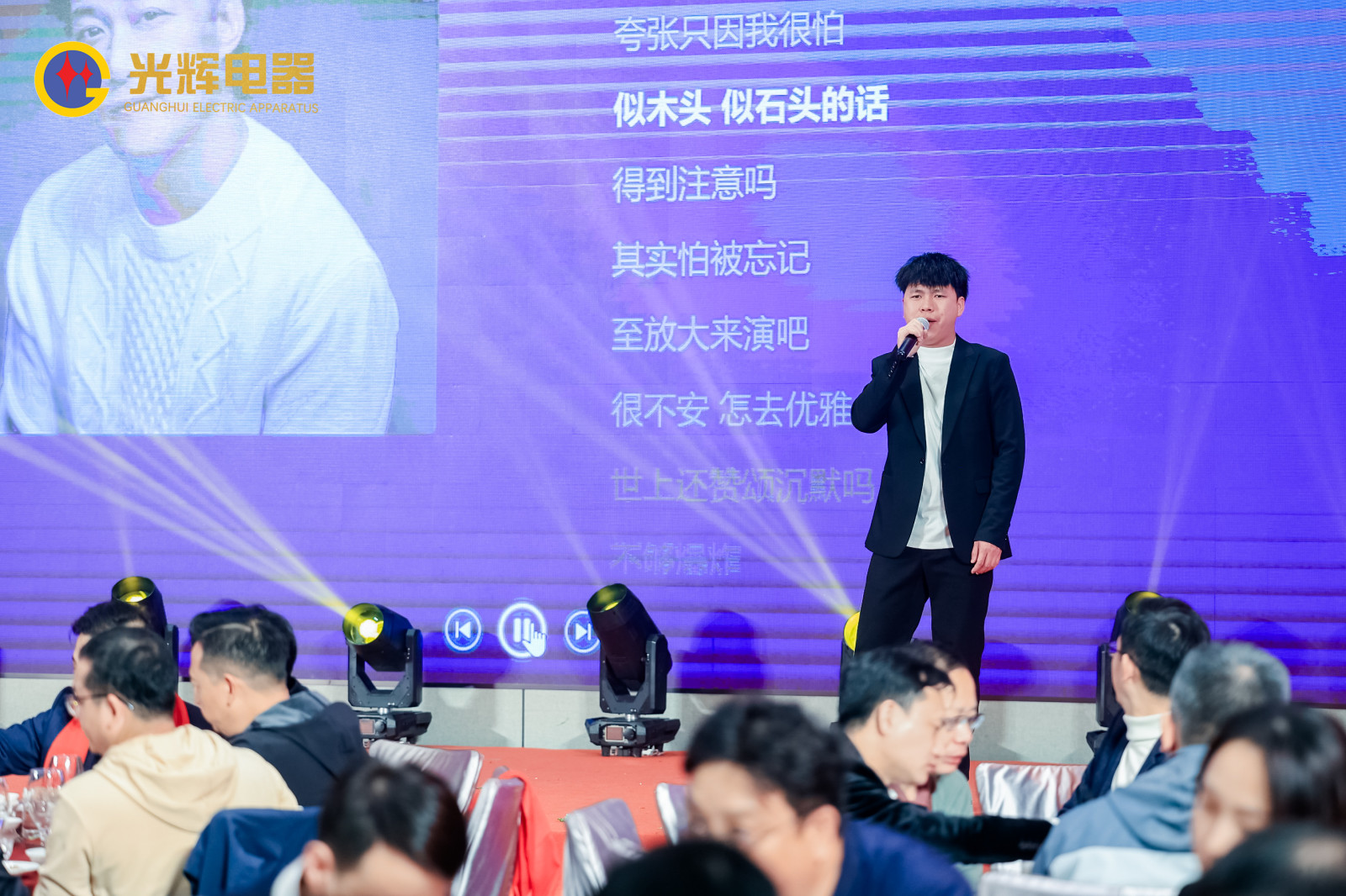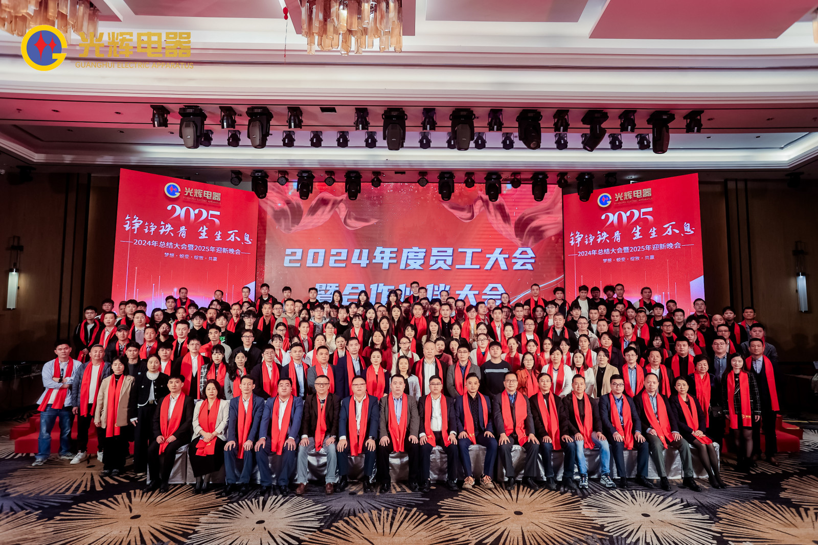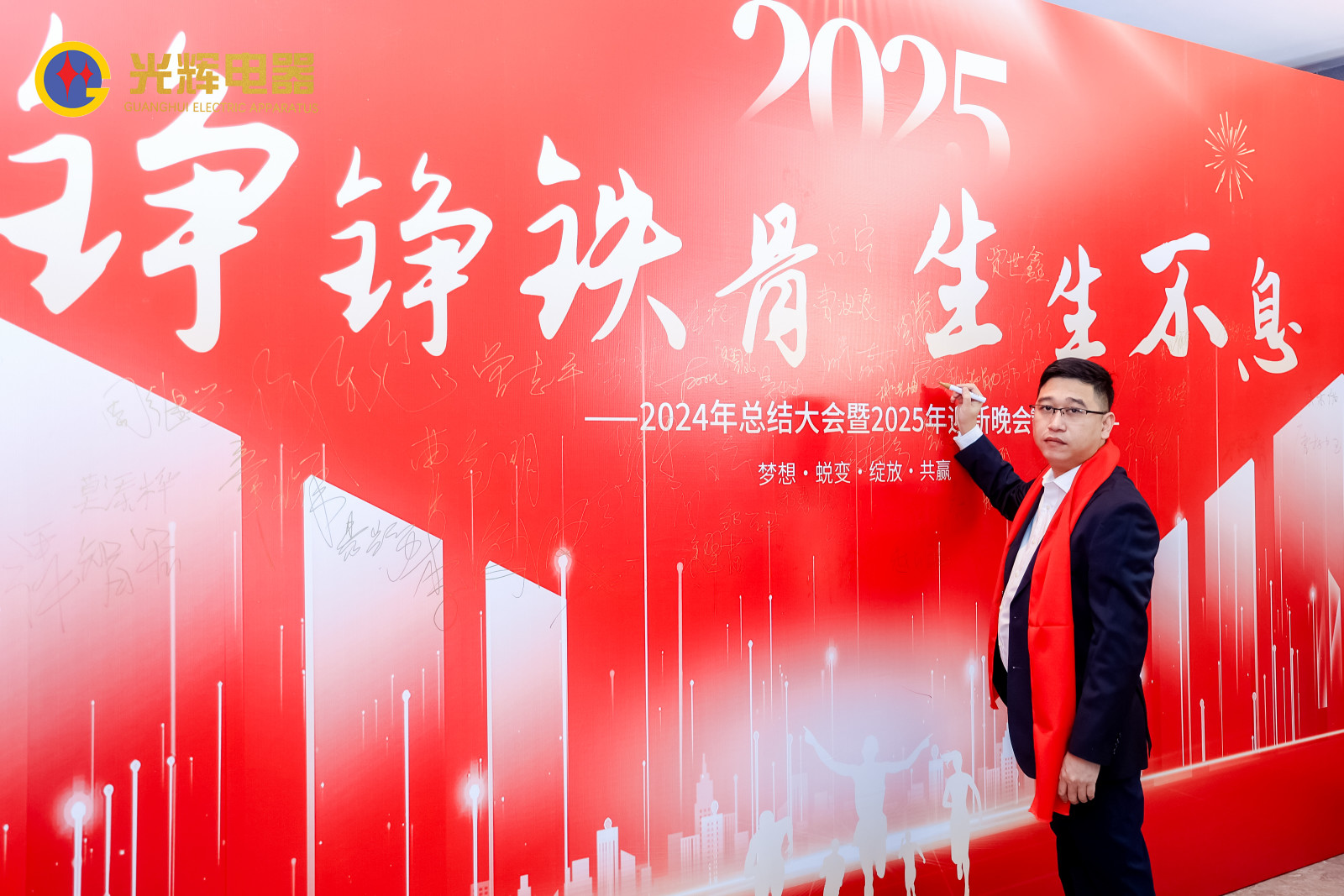 PART.03年會伊始,光輝電器董事長蔡宗光先生慷慨激昂的致辭,執行董事孫偉先生對2025年公司發展做出了戰略規劃;總經理賀未先生對2024的工作內容進行總結,對2025的工作進行全面部署;公司副總經理兼營銷總經理沈文杰先生對營銷中心工作進行總結以及部署。各位領導紛紛講話,號召光輝人人凝心聚力,共贏未來!