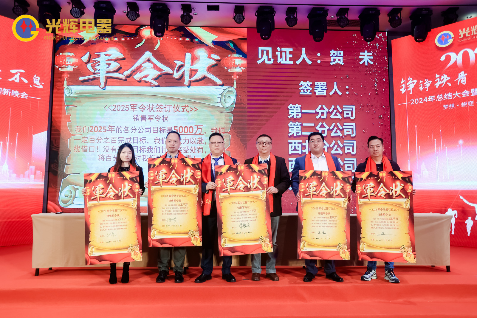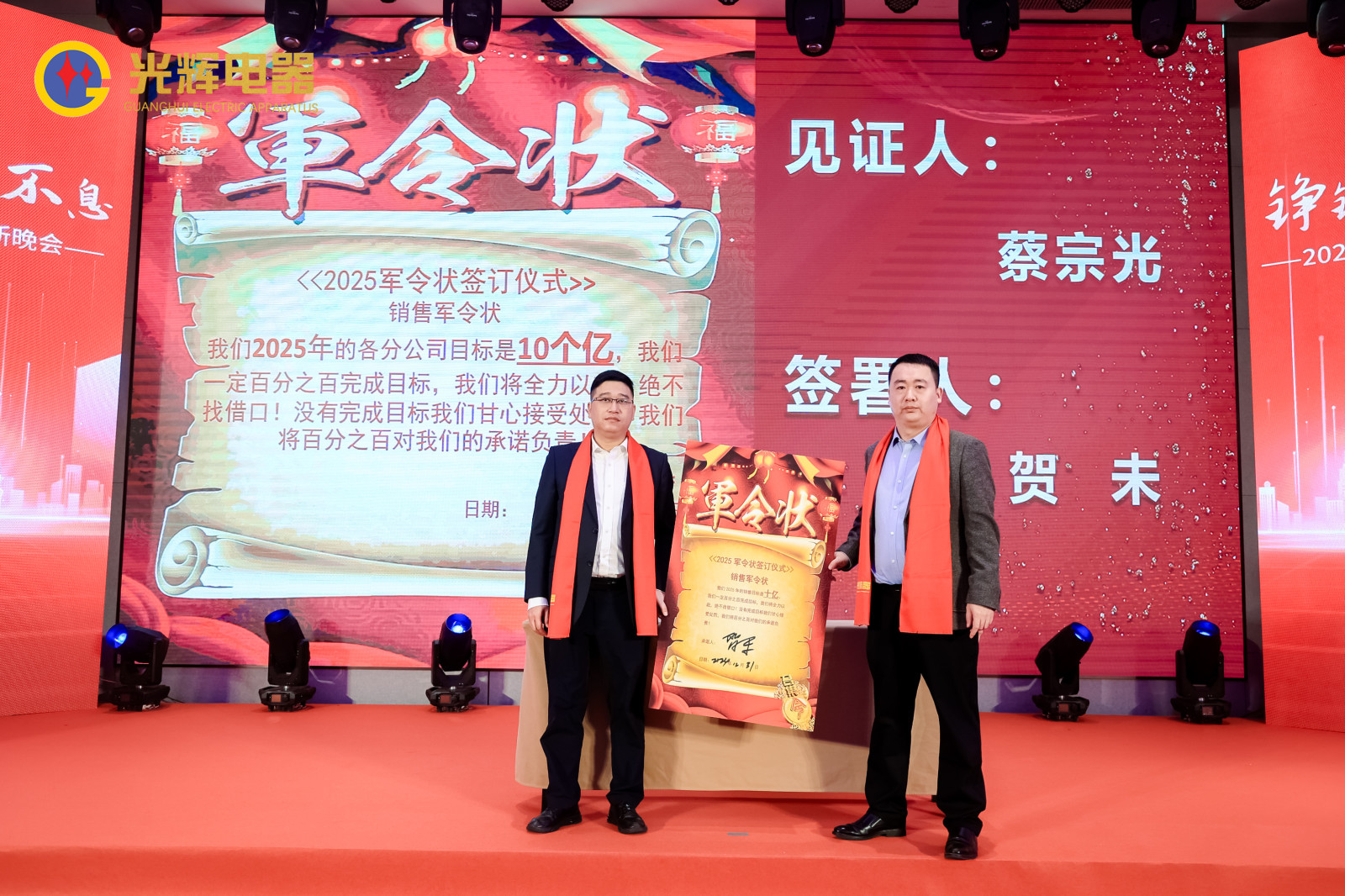 PART.05蓄勢待發,亮劍出鞘,光輝電器團隊以必勝的信念簽下軍令狀,各個負責人誓勇擔當,表達了光輝電器贏戰2025的決心,勇攀巔峰,全力沖刺年度目標!