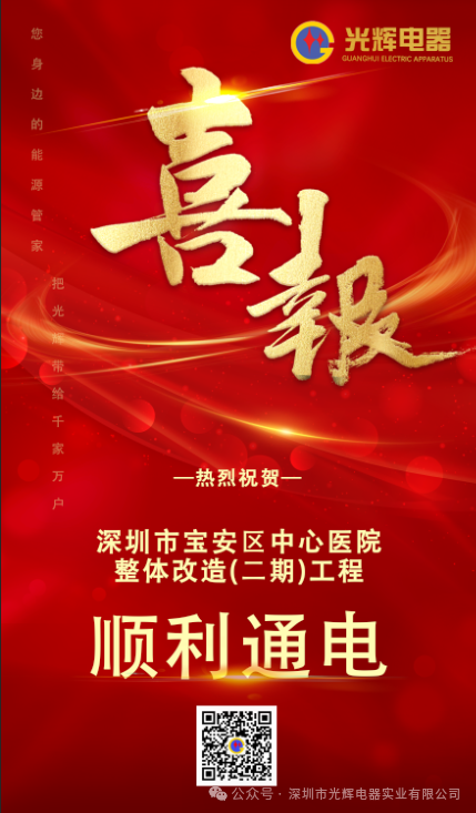2025年4月30日,由光輝電器承建深圳市寶安區中心醫院整體改造(二期)工程順利完工并成功送電!